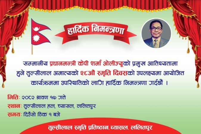 तुल्सीलाल अमात्यको २८औँ स्मृति दिवस कार्यक्रम १७ गते १ बजे....